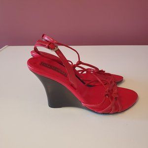 Fun red wedge sandals for a night out! Slight wear on the inside strap.