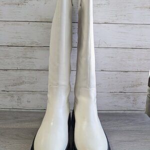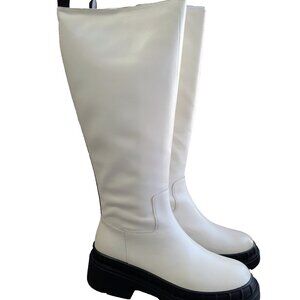 Lisa Vicky Womens Moody-V Leather Water Resistant Knee High Boots White Size 8