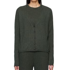 Lisa Yang Abby Cardigan Button V Neck 100% Cashmere Olive Green Size 0 XS NWT