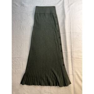 Lisa Yang Katie Skirt Side Button Long Tulip Hem Ribbed Cashmere Moss Size 1 S/M