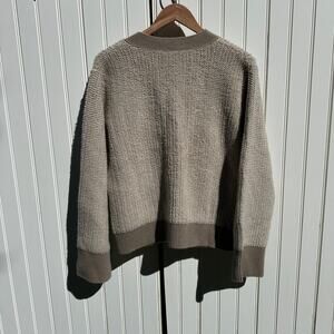 Stay warm and cozy all year with Lisa Yang's 100% cashmere Sonia cardigan. Featuring a beautiful, textured bouclé-knitted body in a light netural taupe ("Sand") with deeper taupe ("Mole") ribbed knit banded trim. Ribbed knit "Sand" patch pockets at the front (perfect for warming your hands) and a 3 tortoise button front. Easy to dress up or down, wear the sleeves down or cuffed. Other "Mole" and "Sand" pieces available in our store at the time of this listing; they pair beautifully with this. Brand new with tags in perfect condition. Retailed for $890. Size 1 (Small / Medium). Measurements in the pics.