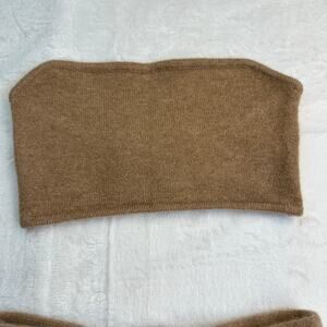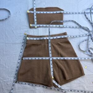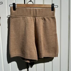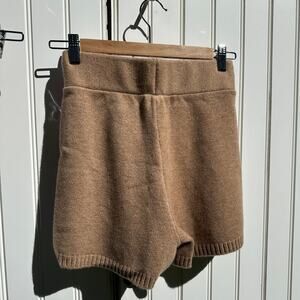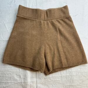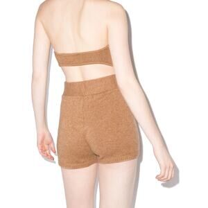 Lisa Yang's Winnie shorts (Size 0 - XS) and Selah bandeau (size 1 - Small / Medium) set will keep you warm and cozy all year long. They are made from the softest 100% cashmere in a gorgeous warm camel color (called "Walnut"). The shorts feature a stretchy hidden elastic waistband with ribbed knit banding, a short cut, clean back and ribbed knit banding at the leg openings. The bra is a pull-on style. Super easy to dress up or down. Brand new with tags, in perfect condition.