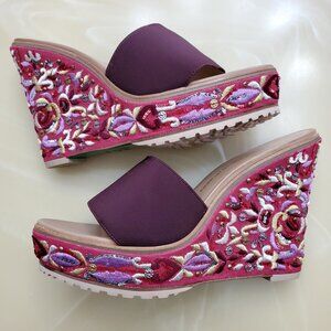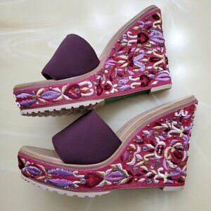 Lisa for Donald Pliner Kalee Floral Embroidery Wedge Sandal Shoe Women's 7.5