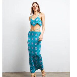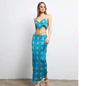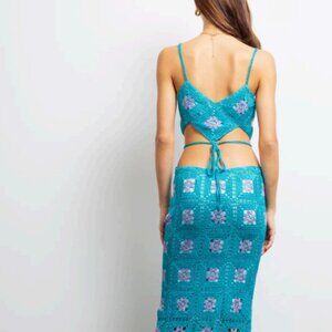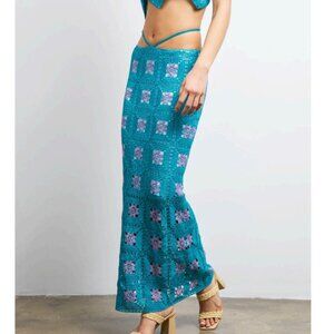 LisaMaree Crochet You Are Now Midi Skirt in Turquoise Size XS NWT