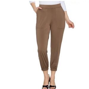 Lisa Rinna Collection Banded Bottom Knit Crop Pants In Dark Taupe.Size XXS