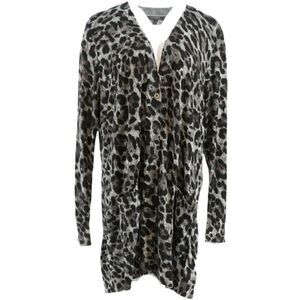 Features: printed design, long sleeves, two front pockets, button front, V-neckline, straight hemline