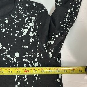 Lisa Todd Long Sleeve Tee Top Pullover Black White Water Splash Spots Print, round neck, rounded hem