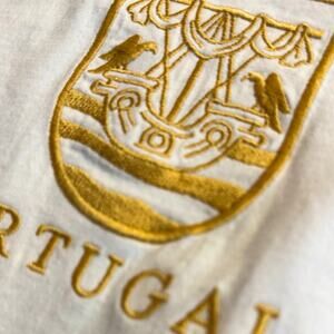 Vintage-style Lisboa (Lisbon), Portugal tee featuring a regal gold embroidered crest. Made from soft 100% cotton with that perfect lived-in feel.