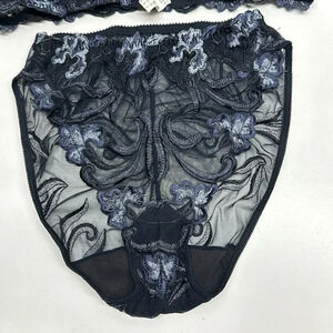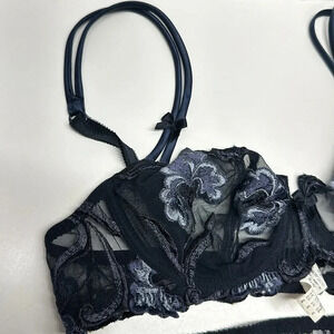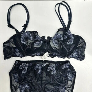 Lise Charmel Lingerie Set Bra & Matching Panties Underwear Blue Floral 34B Small
