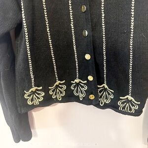 Lise J. Black cardigan sweater with gold braiding & embroidery