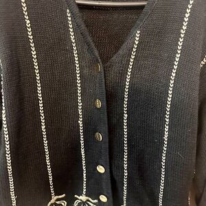 Lise J. Black cardigan sweater with gold braiding & embroidery