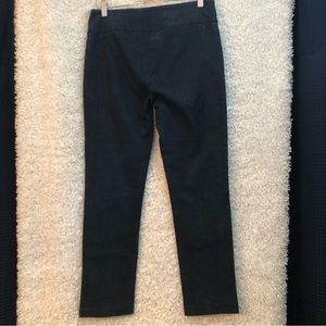Stretch pants by Lisette L. Made in Montreal. Size 8. Blue with reptile print. Pull on. Cotton 76%, polyester 22%, spandex 2%. Wide waist band for comfort. Approx measurements (see pics) Waist 15.5” Rise 9.5” Inseam 27” Smoke free home. Casual, professional, slimming, comfortable, flattering,
