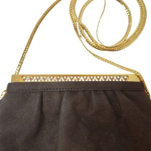 This purse can be used as a clutch, or a crossbody bag, as the chain is designed in a way that allows it to be folded into the purse, which allows it to be used as a clutch. The shoulder strap is beautiful, goldtone, herringbone chain that is 45" long.
