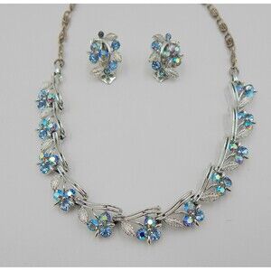 Lisner Aurora Borealis Rhinestones Necklace SilverTone Choker Clip On Earrings