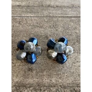 Lisner Clip Ons Earrings Vintage Blue Beads Gold Tone 50s