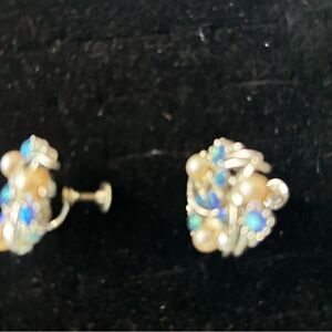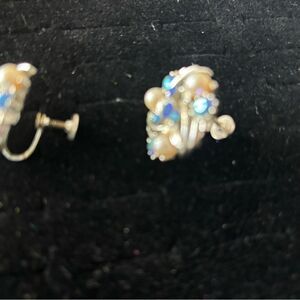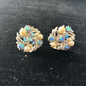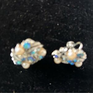 Lisner Earrings Rhinestone Pearl Gold Stud Vintage beaded accessory clip on stud