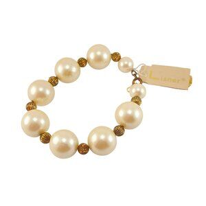 Lisner Faux Pearl Gold Tone Beaded Bracelet Original Hang Tag