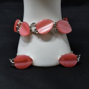 Lisner Pink Lucite Bracelet & Earrings Set Silver Tone 1950s Vintage Jewelry