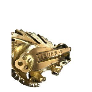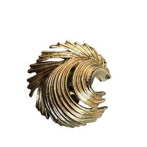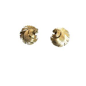 Lisner Vintage Gold Tone Earrings Clip On Swirled Feather Costume Jewelry MCM