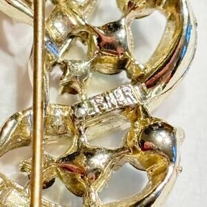 Vintage Lisner brooch - clearly hallmarked on the back - done in a textured silvertone metal setting and covered with light blue rhinestones. This wreath or circle shaped pin is in excellent condition - minor surface wear - no missing stones - so pretty!