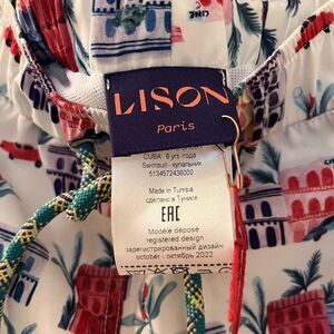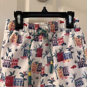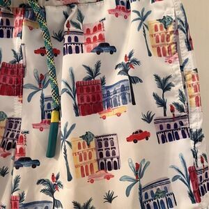 Lison Paris Cuba Swim Trunks Shorts Boys Size 6. New With Tags, never worn, but these were a gift and kinda have a strong smell of perfume. Adorable Cuba theme print with palm trees, parrots, cars and buildings.