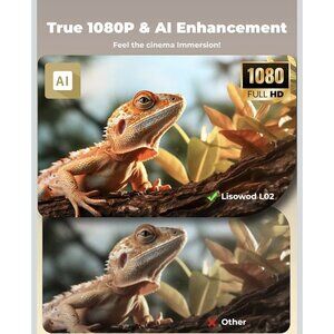 Lisowod L02 1080P WiFi Bluetooth Projector 1200 ANSI | Netflix, YouTube, 4K
