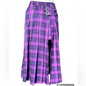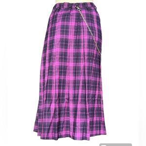 Listen Flavor Purple Checkered Pleated Midi Skirt With Chain Detail