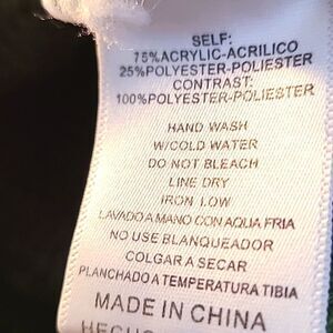 * 75% acrylic, 25% polyester