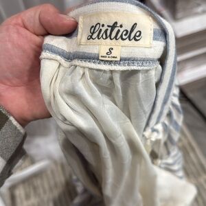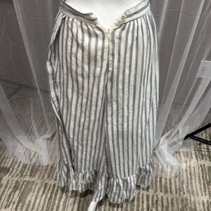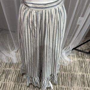 Chic maxi skirt with blue and white stripes. Features a stylish ruffle hem. Ideal for versatile wear.