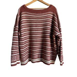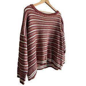 Listicle Cinnamon Rust Cream Striped Pullover Oversized Boxy Sweater Size Small