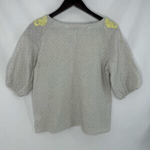Listicle Embroidered Blouse Small Gray Yellow Balloon Sleeve Peasant Bohemian