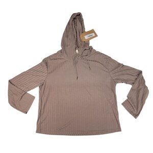 Listicle Hooded Lounge Pajama Set Mocha Draw String Straight Leg Womens Lg New