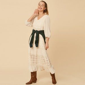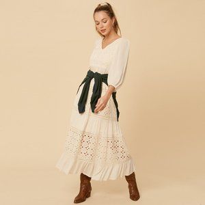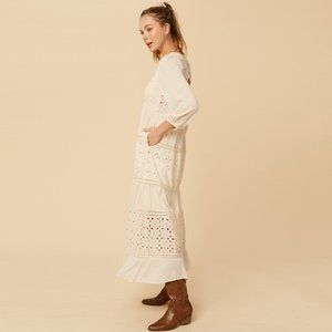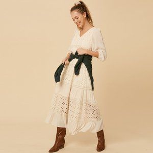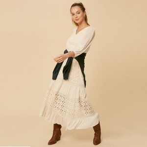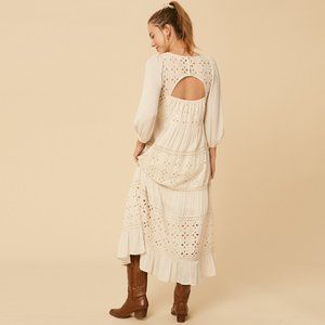 Listicle Pink Maxi Dress NWT • Rayon • Long Sleeve Boho Textured Embroidered