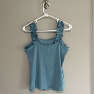 Cute blue ruffle strap tank. Bought from a boutique a couple years ago, but never wore it.