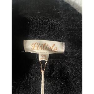 The Listicle Sequin Sleeve Fuzzy Pullover Sweater in Black is a stylish and cozy addition to any woman's winter wardrobe. Made from knit fabric with long sleeves, this sweater features sequin accents for added sparkle. The pullover style makes it easy to wear for casual occasions, and the size S fits most comfortably. This sweater from Listicle is perfect for staying warm and fashionable during the colder months.