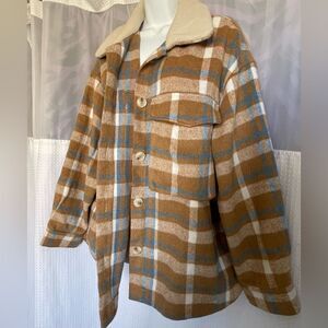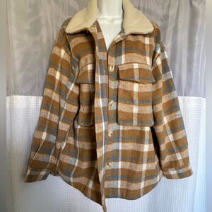Listicle Tan and Blue Plaid Shacket Size Medium