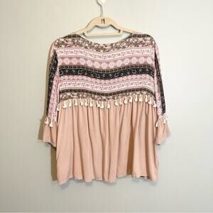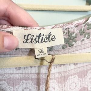 Listicle Women's Pink Floral Front Print Full Sleeves Blouse Size Large