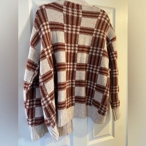 Listicle cardigan sweater. Size small but oversized a little that a medium could wear. I wore this a handful of times and it’s in good condition. The color is a nice brick red color. Any questions please ask! Offers welcomed!!