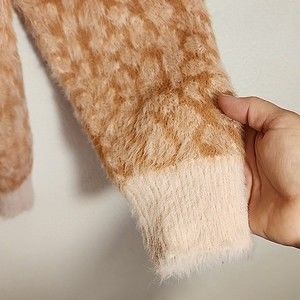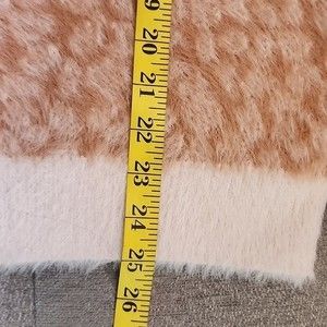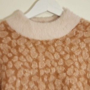Approximate measurements in photos. Some light stretch to this sweater. Fur like texture with animal print. Does have one small pull at back neckline as pictured. Tag with logo looks possibly stained/needs to be washed.