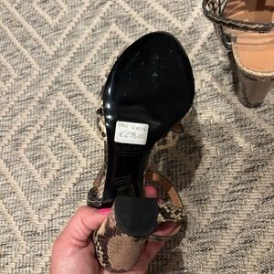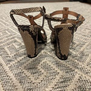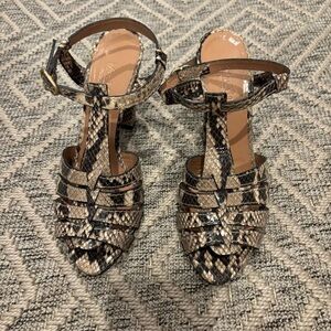 Stunning vintage Max Mara heels in faux snakeskin leather with a strappy design and block heel. These have never been worn. Made in Italy with high-end craftsmanship, these shoes are from the early 2000s and originally retailed for €239.00 (sticker still on sole). Chic and timeless, they feature: