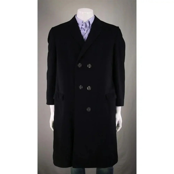 Lit Brothers Navy 100% Cashmere Continental Cashmere Vienna Austria Overcoat~ L