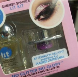 A high-performance, high-sparkle kit with loose glitter, clear liquid glitter base, and a brush for the ultimate glitz.This set contains: - 0.14 oz "Clearly Liquid" Glitter Base - 0.14 oz Glitter Color - Synthetic Brush Applicator
