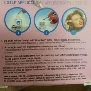 This set is designed to give a clean, controlled loose glitter application. The Clearly Liquid Base™ adheres glitter to skin and nail surfaces, adding all-day shine that stays where you want it. This product is vegan, hypoallergentic, and cruelty-free.