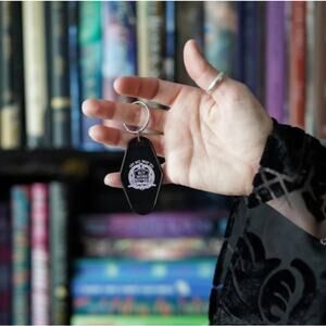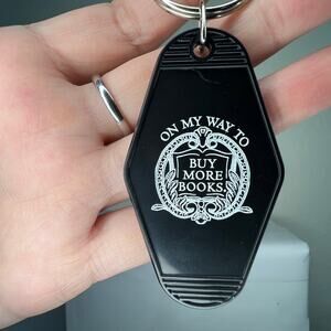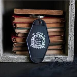 "This On My Way To Buy More Books Motel Keychain is the perfect bookish addition to your keyring! Because let's be honest . . . if you're leaving the house, it's probably to buy more books. Grab this cute motel keychain for yourself or pick up a few for bookish gifts!"
