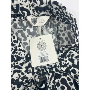 Lita by Ciara NWT Fluid Print Tie Waist Pants In Black Mini Cheetah Size Medium