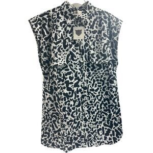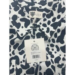 Lita by Ciara NWT Muscle Button-Up Shirt Dress Black/White Cheetah Size Medium