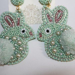 Lite Green Easter Bunny w/Real Furry Tail Earrings