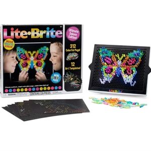 The Lite-Brite Classic is a retro toy that allows kids to create art with light. It comes with 206 glowing pegs in 6 different colors, 6 design templates, and 4 different light modes. The battery-powered LED bulbs light up the screen, making it a fun and educational experience. This toy helps develop fine motor skills and hand-eye coordination. Suitable for kids aged 4 and older, it's a great gift for boys, girls, and unisex kids. The classic toy is perfect for long car rides or quiet afternoons at home, and its nostalgic value makes it a great way to share childhood memories.