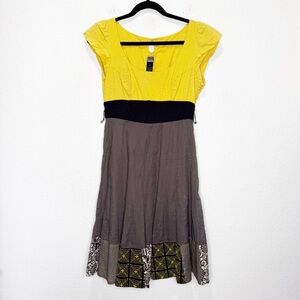 Classic Blair Waldorf Gossip Girl look!! Missing original belt. Fit and flare. Cap sleeve. Empire waist. Patchwork hem. Knee length.