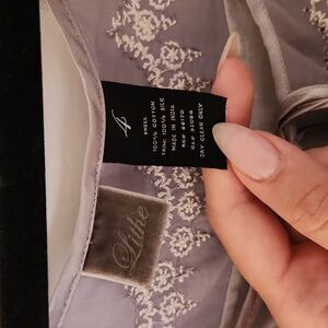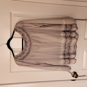 This blouse is so beautiful with pretty details. I don't ever wear it, but I imagine it would look fantastic at the Renaissance Fair. It has a lot of intricate embroidery and beautiful details. The blouse itself is 100% cotton and the trim is 100% silk.